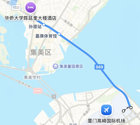 1. 厦门高崎国际机场→华侨大学陈延奎大楼酒店(15km)