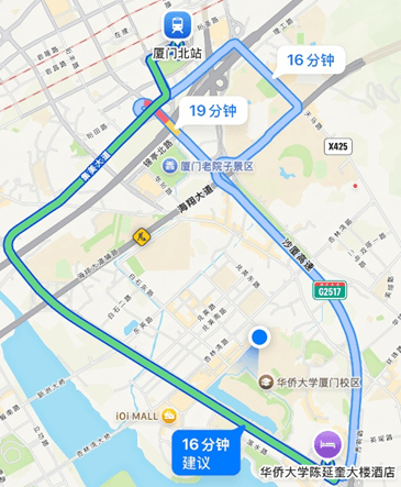 2. 厦门北站→华侨大学陈延奎大楼酒店(7km)